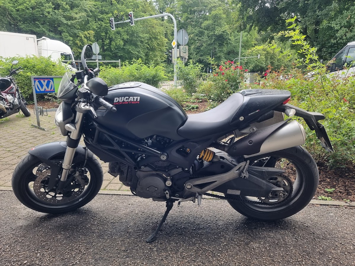Ursprünglich hatte ich mich für diese Fahrschule entschieden, weil ich das Motorradfahren unbedingt auf dem Fahrschul-Motorrad dieser Fahrschule, der Ducati Monster 696, lernen wollte. Und das wäre mir auch am liebsten innerhalb kürzester Zeit gewesen. Nachdem ich aber erkannt habe, dass man ein sicheres Fahren eben nicht auf Zeit-Druck im Schnellverfahren, sondern lieber langsam, stetig und dafür aber sicher und richtig lernt, hat es eben ein wenig länger gedauert als ursprünglich erwartet. - Was jetzt, mit 8 Wochen Theorie und 10 Wochen Praxis insgesamt auch nicht wirklich sehr lange war. - Rückblickend ist mir das sogar, genau so, lieber gewesen, weil ich dadurch ein richtig gutes Selbstvertrauen aufbauen konnte – das mich die Prüfungen jeweils gleich beim ersten Durchgang bestehen lassen hat und mich auch seitdem gut und sicher im Straßenverkehr begleitet. 😊