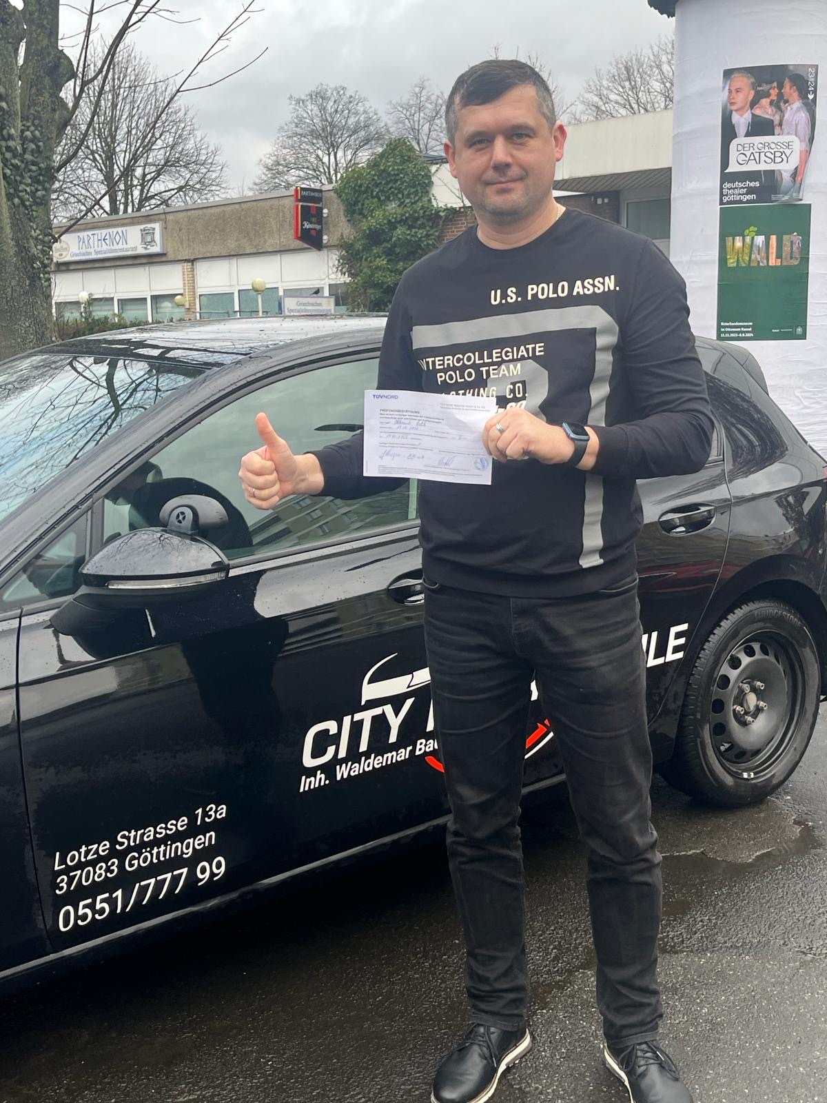 Ich habe heute meine Fahrprüfung bestanden und möchte mich von Herzen bei der City Fahrschule Göttingen bedanken!