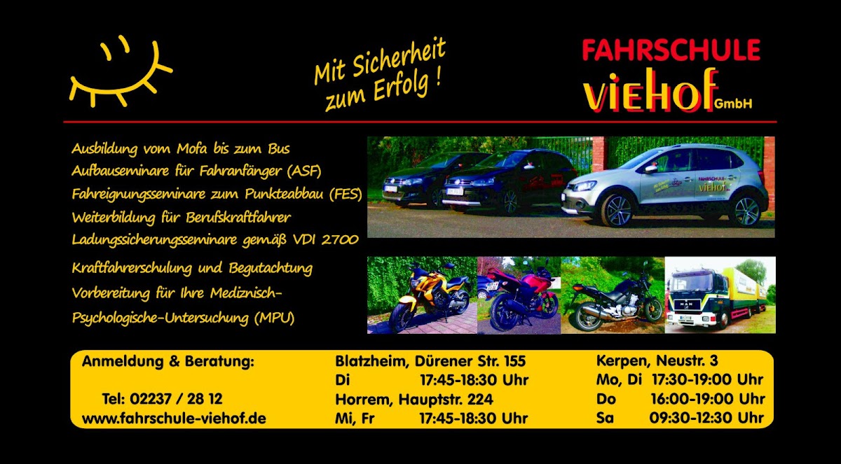 Als ich die Fahrschule zu einer anderen gewechselt hatte, konnten diese meine Probleme direkt erfassen und beheben und dort hatte ich direkt die erste Prüfung bestanden. Ich kann also Viehof nicht empfehlen, dafür kostet es alles viel zu viel um nicht einmal richtig auf Prüfungen vorbereitet zu werden.