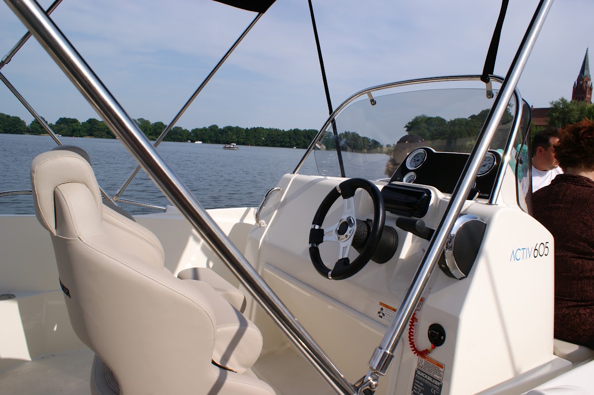 Offensichtlich hat diese Fahrschule ihren Wirkungskreis auf Röbel ausgedehnt. Als Stammlieger im Alten Hafen des RSV - Röbel, hat man z.Zt.mehrmals wöchentlich, mehrfach am Tage, Gelegenheit, einen wahren BOOTS - HOOLIGAN in Aktion zu erleben: Ein weißes RIB mit Biminitop (Fotos), Fahrer, groß, m. Glatze, rast kreuz und quer, wie ein Bekloppter über die Binnenmüritz, so daß den umgebenden Liegern von dem Schwell die Tassen aus dem Spind fallen. Zul. Speed: 9 km/h. Gefahren: ca.50 - 70km/h. Bei näherem Hinsehen entpuppt sich der Rabauke als Boots - FAHRLEHRER, der Tag für Tag, brav mit seinen Schülern, 'Mann über Bord' Manöver u.a.m. übt. Offensichtlich muß er dann in den Pausen, auch nach Feierabend mal so richtig Dampf ablassen! Prima Fahrlehrer, der sagt:"Die Regeln, die ich den Deppen gerade beigebracht habe interessieren mich nicht die Bohne. Ich mache was ich will. Die Polizei ist weit". Ich denke, für einen Fahrlehrer fehlt es da erheblich an sittlicher Reife und somit ist wohl Schulungsbedarf gegeben... Seitdem ist einige Zeit vergangen und dem 'Kritisierten' gelang es wohl, dies 'Dokument der Schande' (für ihn!), wg. ' Verstoßes gg.d. Google - Richtlinien' zu canceln. Fakt bleibt, Verkehrsrowdys haben als Fahrlehrer den Beruf verfehlt! Es gibt übrigens Videos von den Rasereien in der 9km Zone (!) Nun cancelt mal schön...