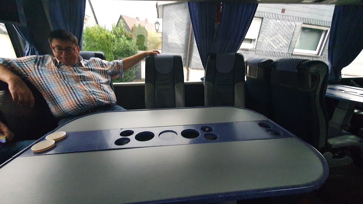 Neben der Fahrschule bietet Ralf Behme auch Bus Touren an. Nur zu empfehlen! Freundlich, zuverlässig, pünktlich, hilfsbereit,... und der Bus ist einmalig. Da kann sich jeder 5 Sterne Reisebus hinter verstecken! Super bequem, mit 3 Tischen zum besseren quatschen, feiern, spielen,... Kalte Getränke gibt es sowieso, wie vorher individuell abgesprochen, auch eigene Getränke können in den Kühlschrank gelegt werden. Dazu eine große Kaffeebar!!!!! Musik ist obligatorisch und in jeder Ecke gibt es eine ein TV Gerät, auch für eigene Bilder, Videos etc. Probiert Es einfach aus. Danke Ralf!